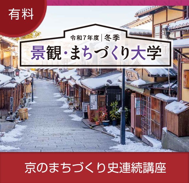 景観・まちづくり大学は、京都のまちづくりに関心のある人々が集い、語らい、交流する場です。共に学び、共に育つ…。